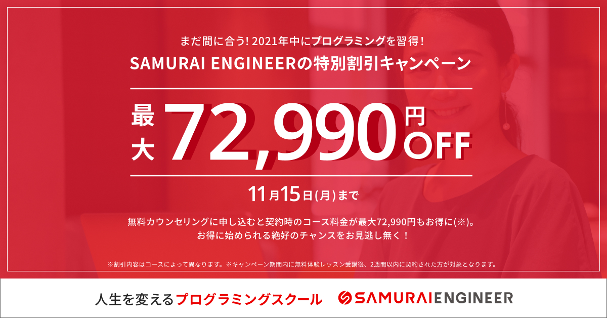 ・【11/15まで限定】受講料が最大72,990円OFF